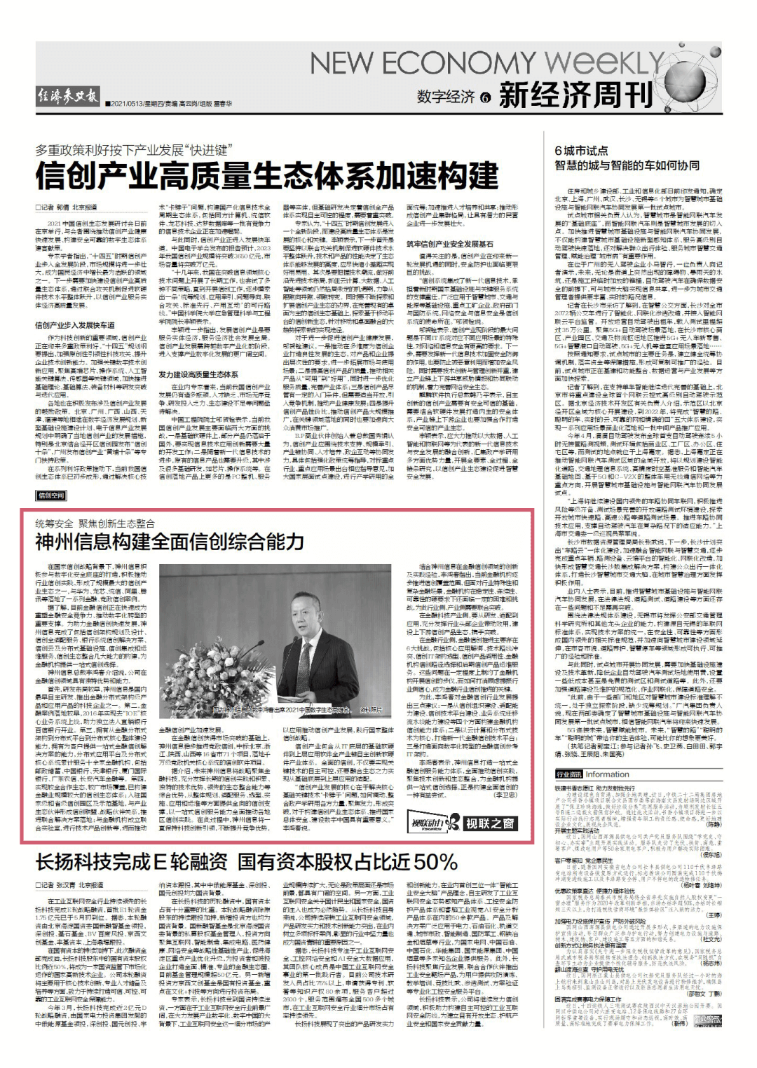 新华社《经济参考报》:统筹安全、聚焦创新生态整合,神州信息构建全面信创综合能力